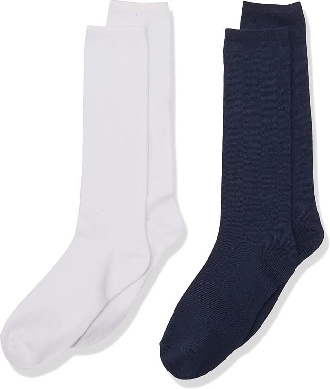 - Socks: white or navy blue solid colors only (logo okay) For girls: with skirts for formal dress days (such as school photo day), knee-high, white socks are required.