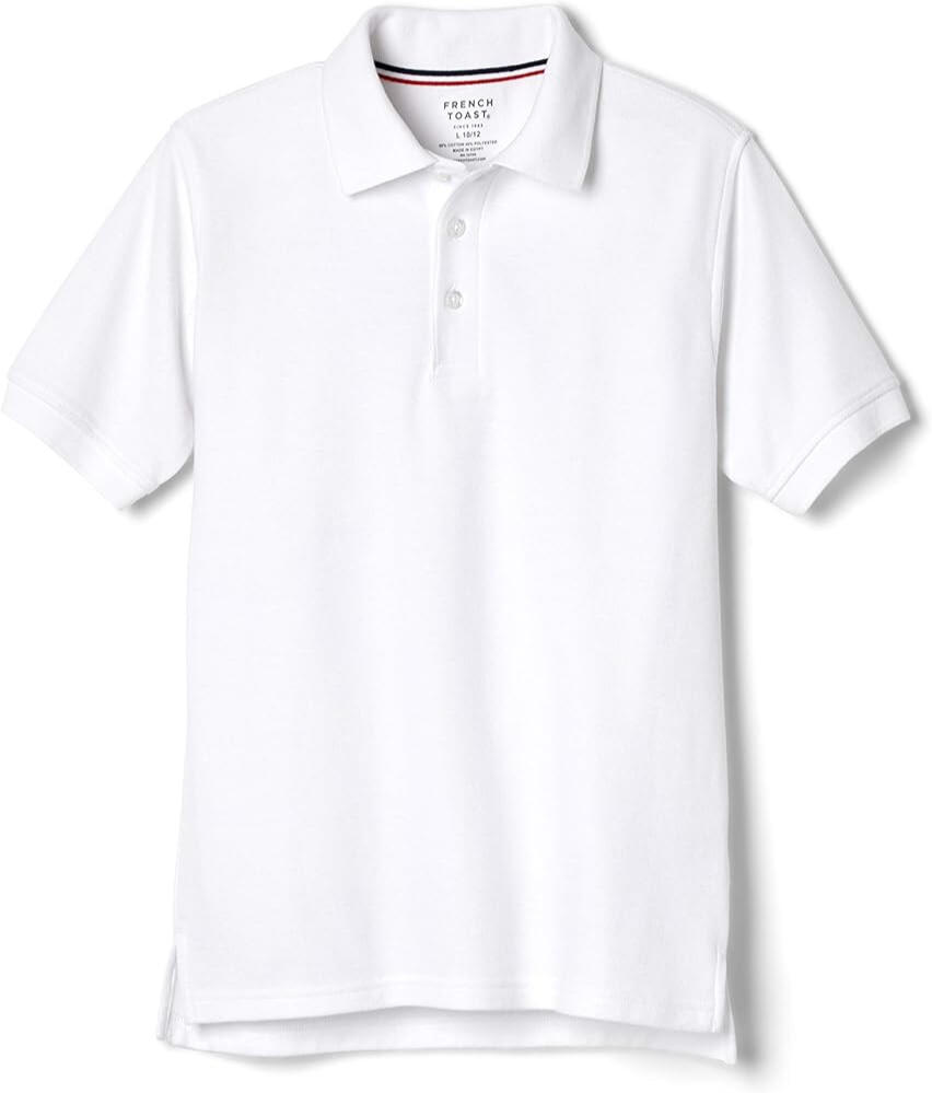 White or navy blue polo shirt (girls may opt for ruffled or plain placket), or white button down shirt, with short or long sleeves. Shirts may not have any logos, words, or graphics other than the school logo.